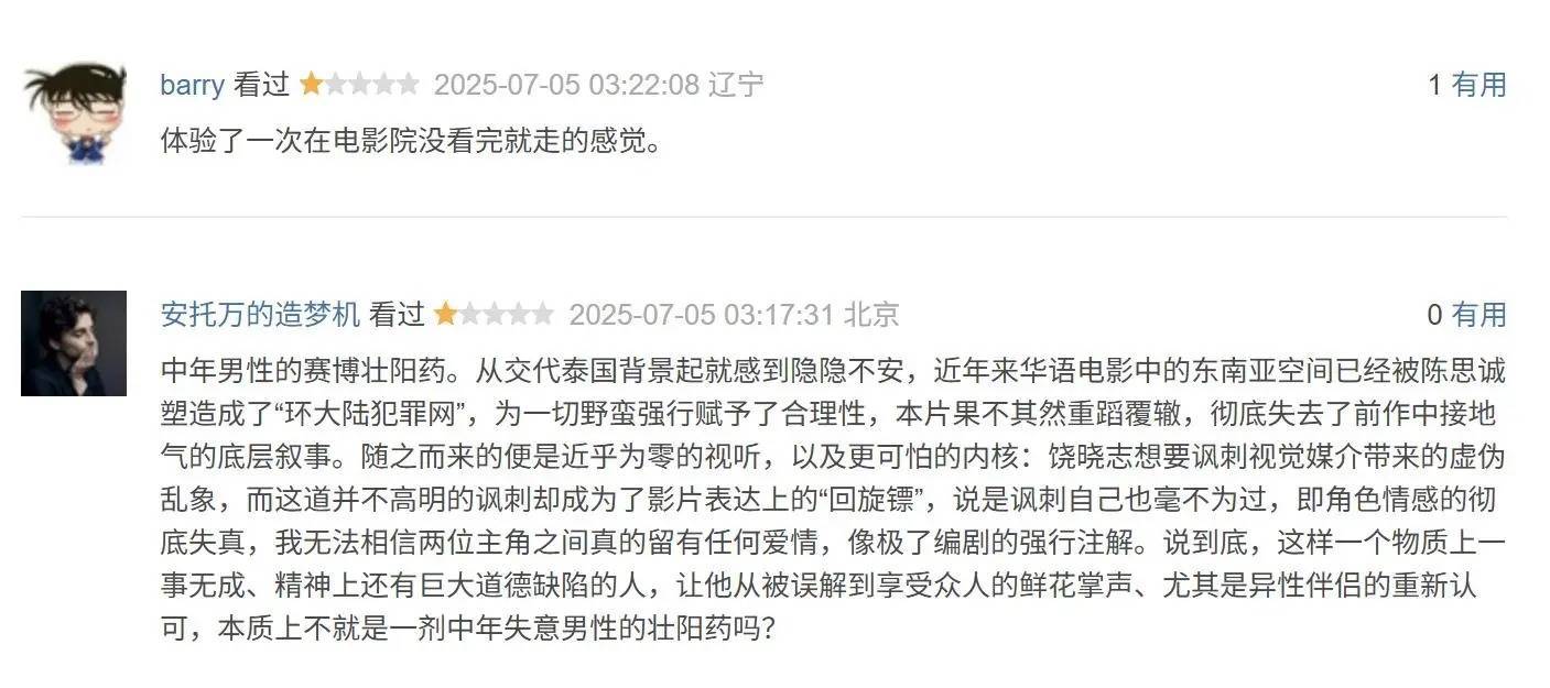 总结来看,大部分打差评的不雅众,齐是带着对前作的期待走进影院,收尾产生了广泛的热诚落差。