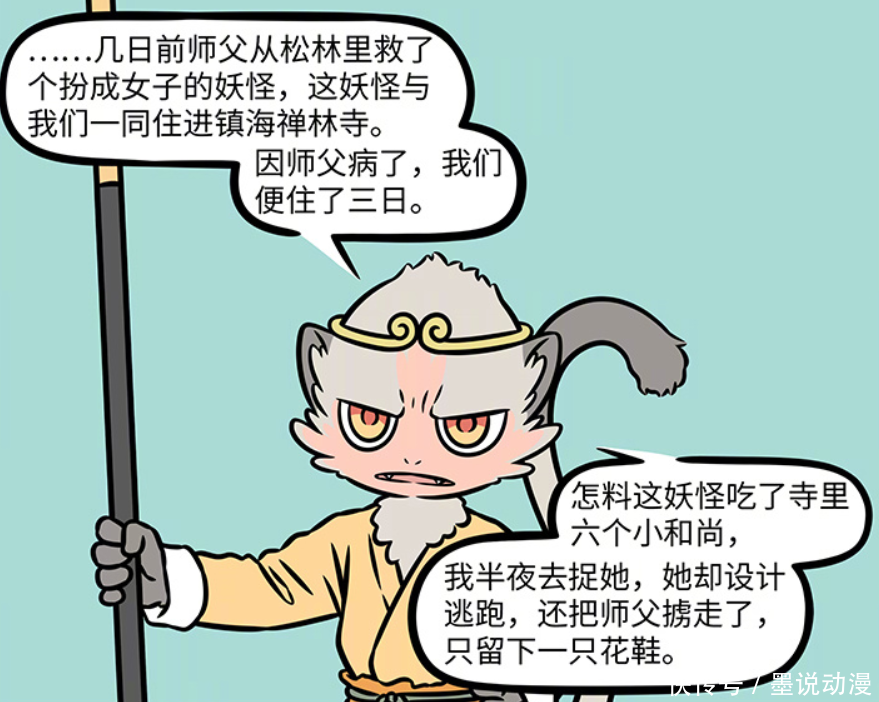 孙悟空启动描述,在几天前,师傅在松林里救了女子假扮的魔鬼。这个魔鬼还与他们总共住在镇海禅林寺。这个魔鬼还吃掉了寺庙内部的六个小头陀。孙悟空更阑去捉她,效果被她诡计潜逃,还持走唐三藏,留住了一只花鞋。