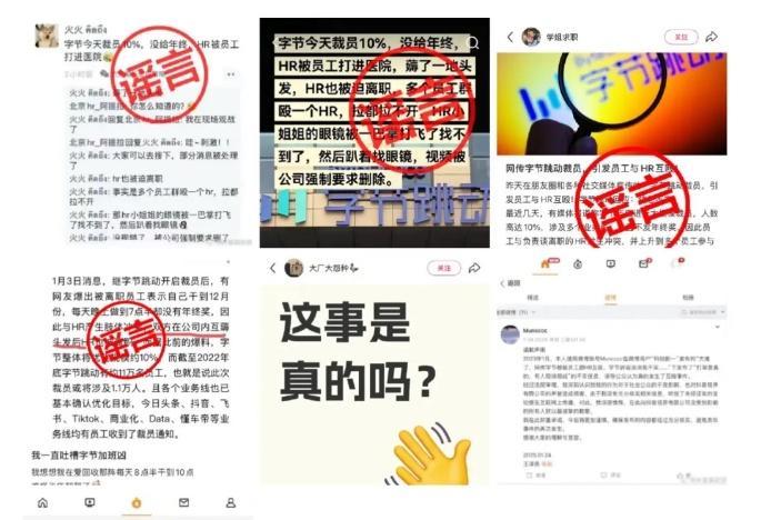 3月14日,南都记者从抖音方面获悉,近期,部分酬酢平台上出现了“字节裁人10%”“未给年终奖”“HR和职工互殴被打进病院”等信息。抖音方面默示,经核实,有关现实齐为流言,系2023年1月肖似流言的变体,公司并未多半裁人,也不存在HR与职工因“裁人”“年终奖”发生肢体冲突的情况,“互殴”“薅头发”等形容熟习抓造。(起首:南边都市报)