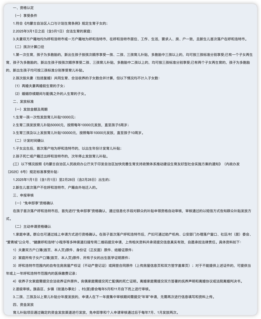 3月13日,内蒙古呼和浩特市卫生健康委发布落实《对于促进东说念主口汇注鼓吹东说念主口高质地发展的奉行观念》育儿补贴技俩奉行笃定及奇迹经由。
