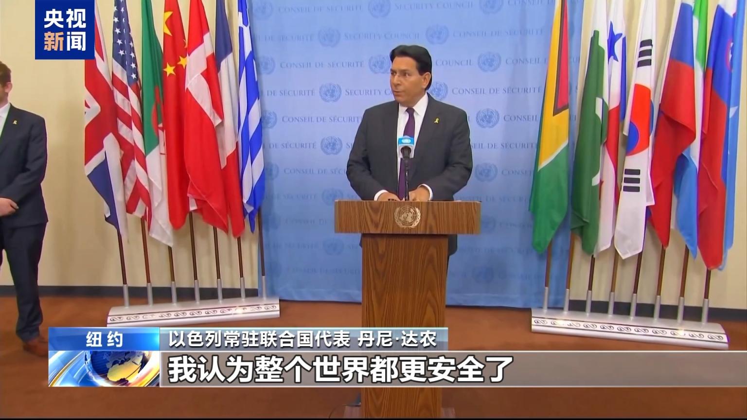 以色列常驻纠合国代表 达农:不仅所以色列,我合计统共宇宙皆更安全了。一个挟制要蹂躏纠合国会员国的顶点政权,不复存在了。我合计今天是中东的历史性时期。