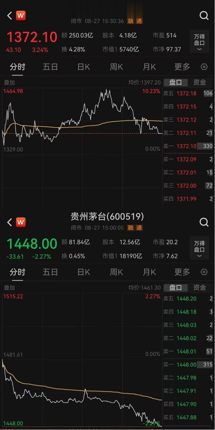 在牛市氛围映衬下,市集对8月27日寒武纪卓绝贵州茅台已有预期。
